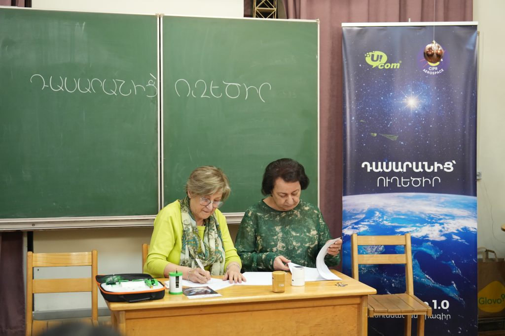 On December 5, CIPR Aerospace founder & CEO Mary Hrachoohi Boghosian and Ucom General Director Ralph Yirikian delivered “Space 1.0” educational kits to the “Aregnazan” Educational Complex and the A.H. Yeritsyan Gymnasium at Lomonosov Moscow State University Branch, both in Yerevan (RA).